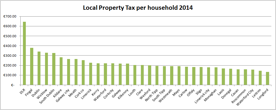 LPT is collected by central govt’s Revenue Commissioners. While in theory up to 80% of the tax is retained locally, central government funding is being reduced to any local authority that is judged to have too much LPT paid in its area. So effectively this is a tax on living in an urban county, the proceeds of which are paid to those living in more rural counties where services cost more to provide due to economies of density.